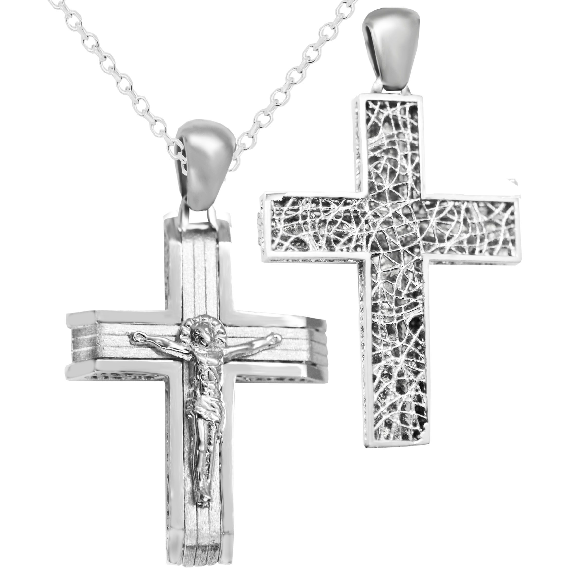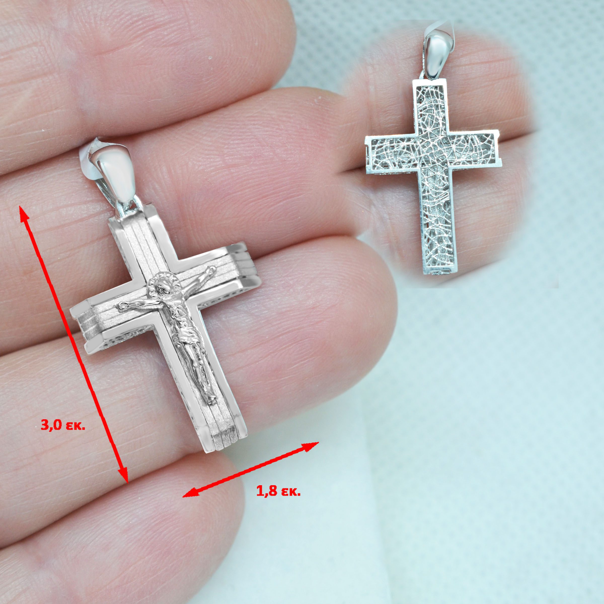 STPR47ζ -Λευκόχρυσος βαπτιστικός σταυρός 14Κ με αλυσίδα