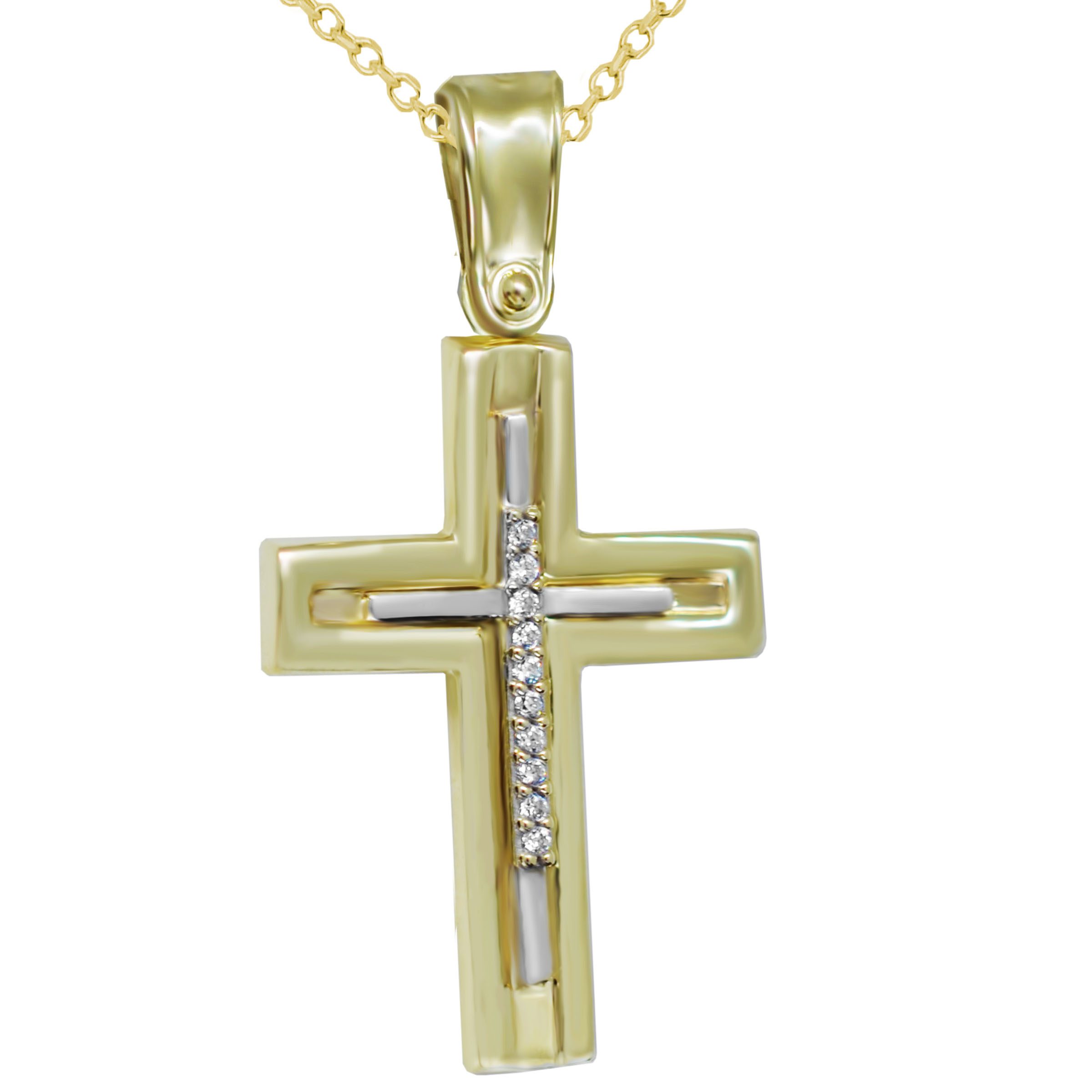 STPR5ζ -Χρυσός βαπτιστικός σταυρός 14Κ με αλυσίδα