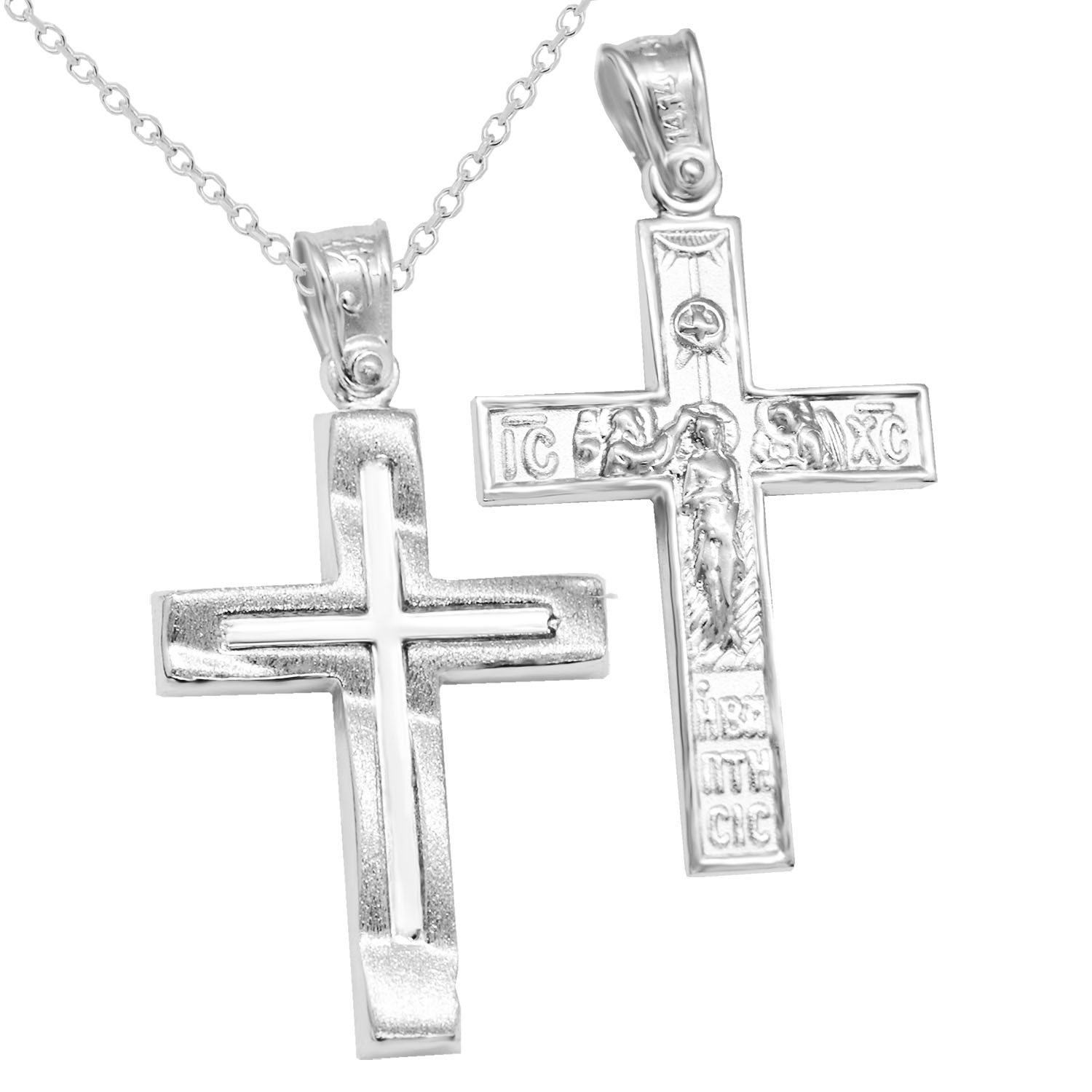 STTH107m -Λευκόχρυσος βαπτιστικός σταυρός 14Κ με αλυσίδα