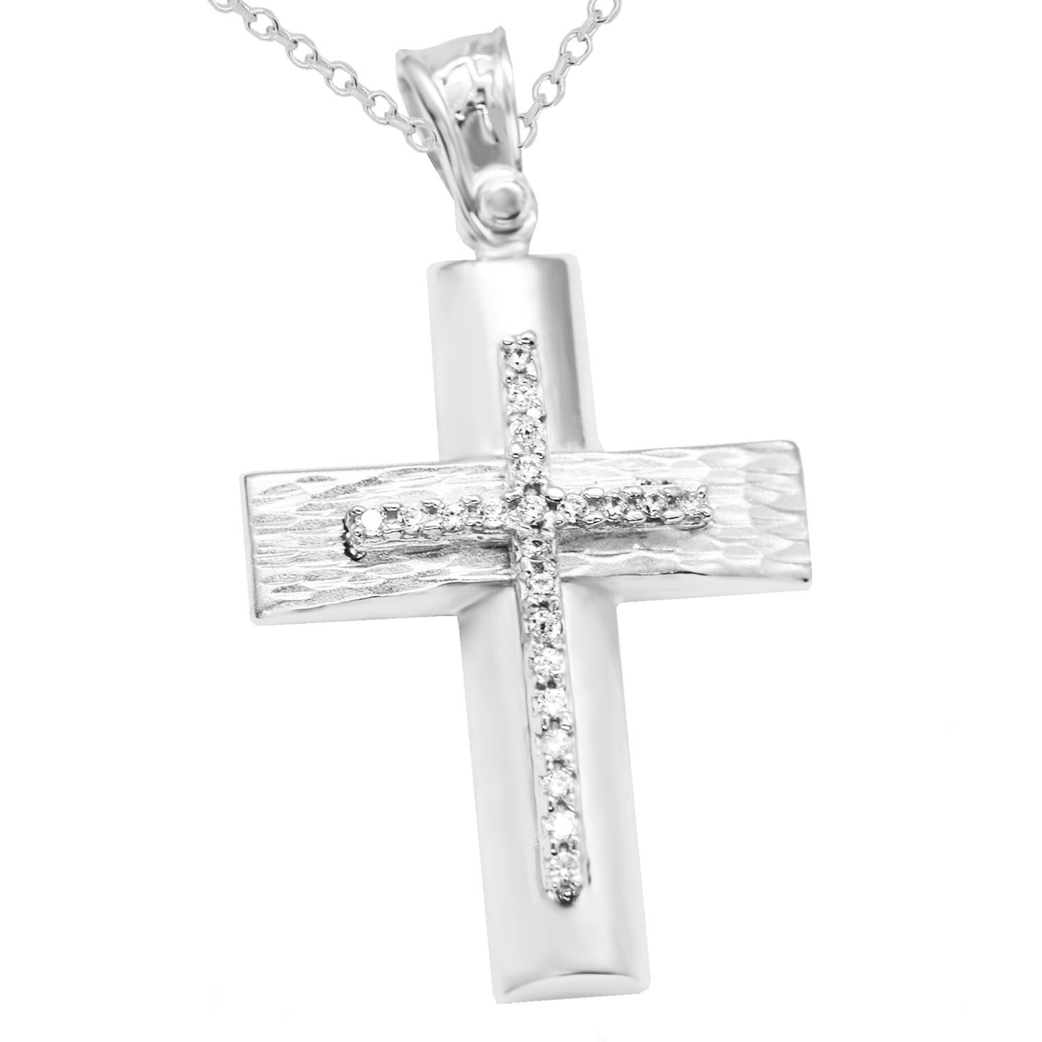 STTH109m -Λευκόχρυσος βαπτιστικός σταυρός 14Κ με αλυσίδα
