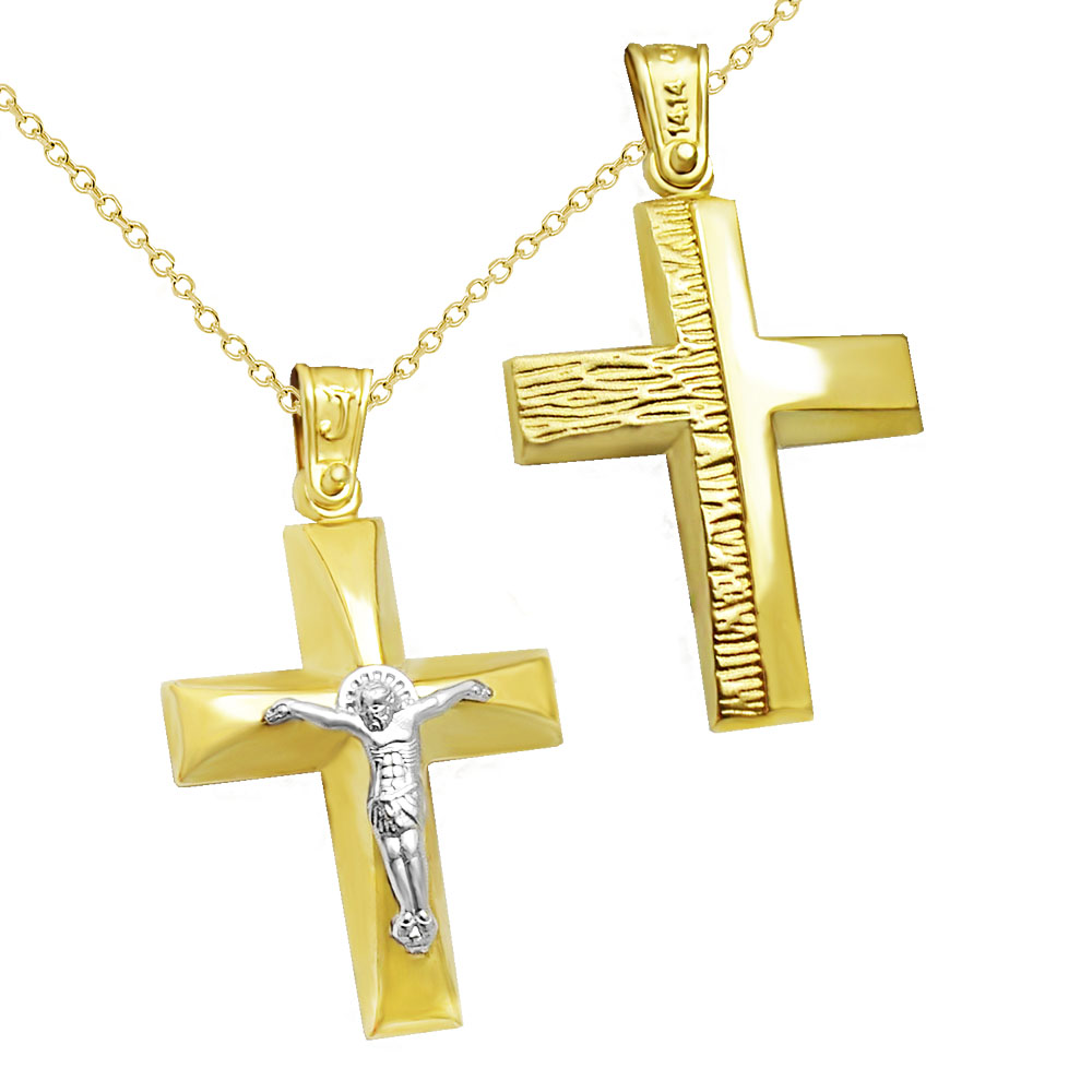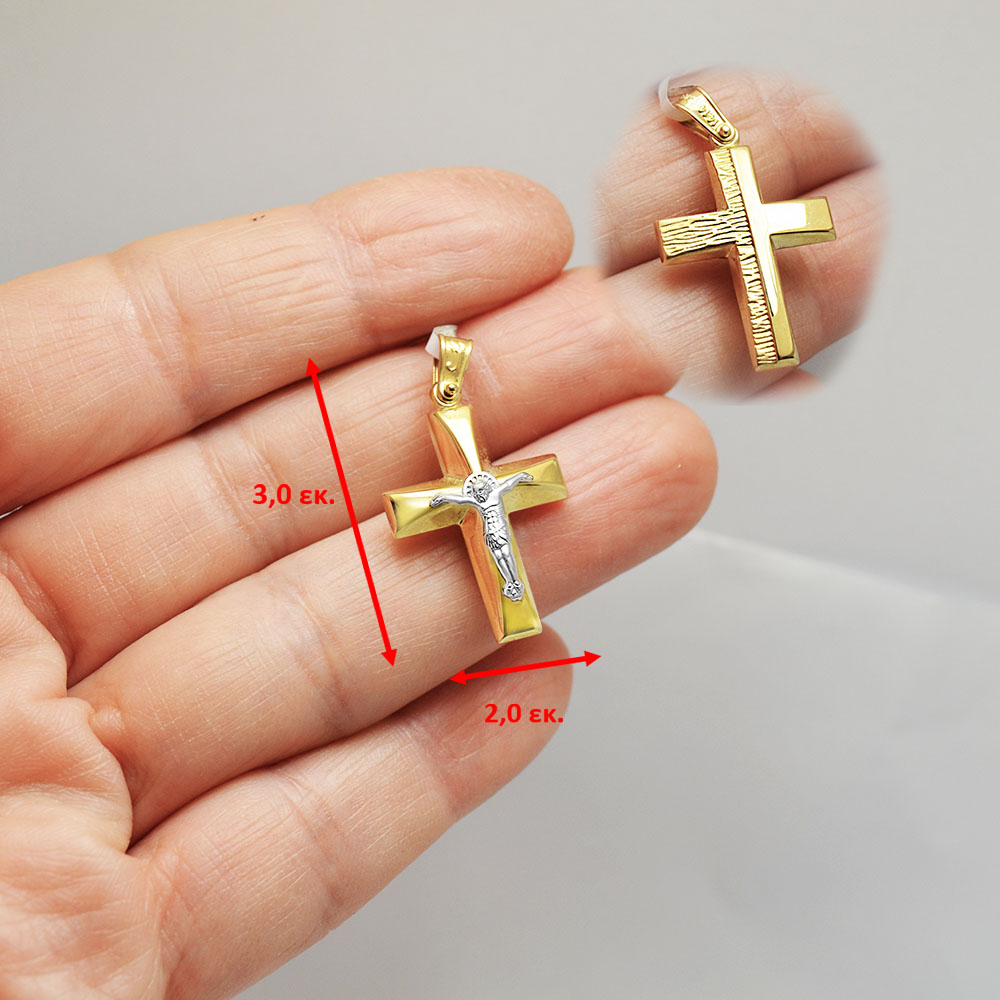 STTHAN1302m -Χρυσός βαπτιστικός σταυρός 14Κ με αλυσίδα
