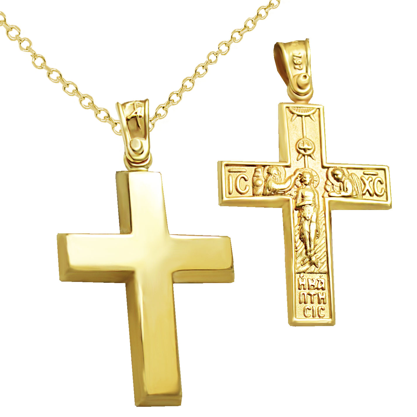 STTHAN1307m -Χρυσός βαπτιστικός σταυρός 14Κ με αλυσίδα