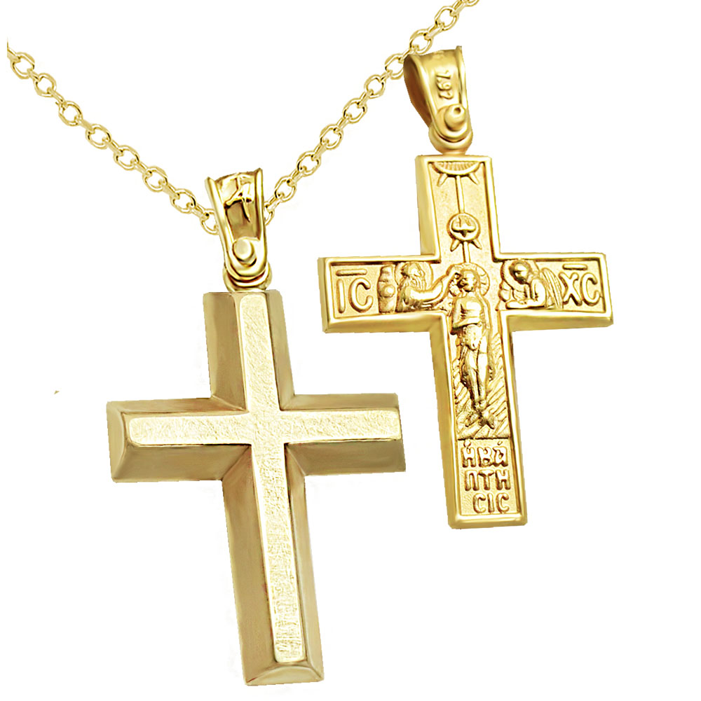 STTHAN1308m -Χρυσός βαπτιστικός σταυρός 14Κ με αλυσίδα