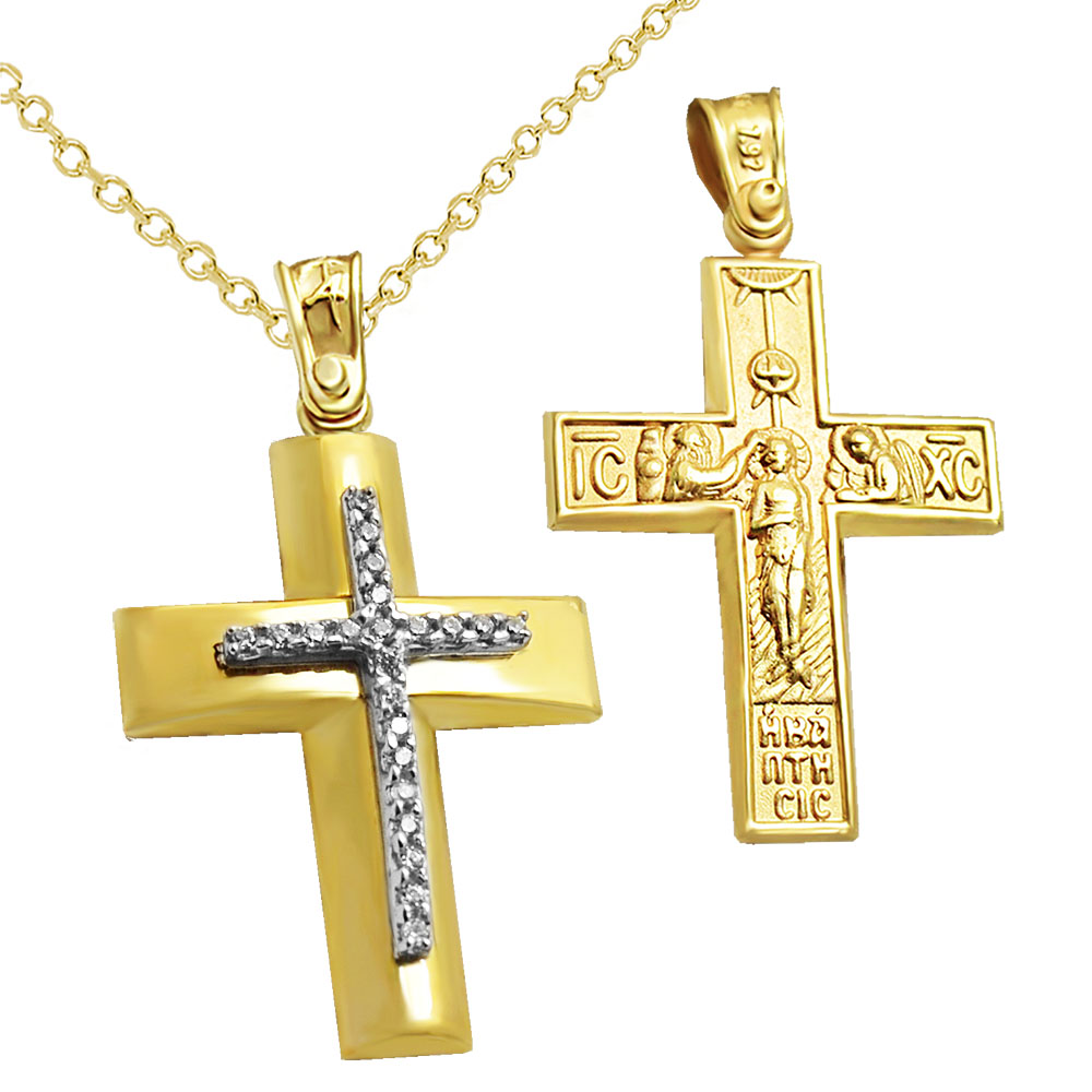 STTHAN1313m -Χρυσός βαπτιστικός σταυρός 14Κ με αλυσίδα