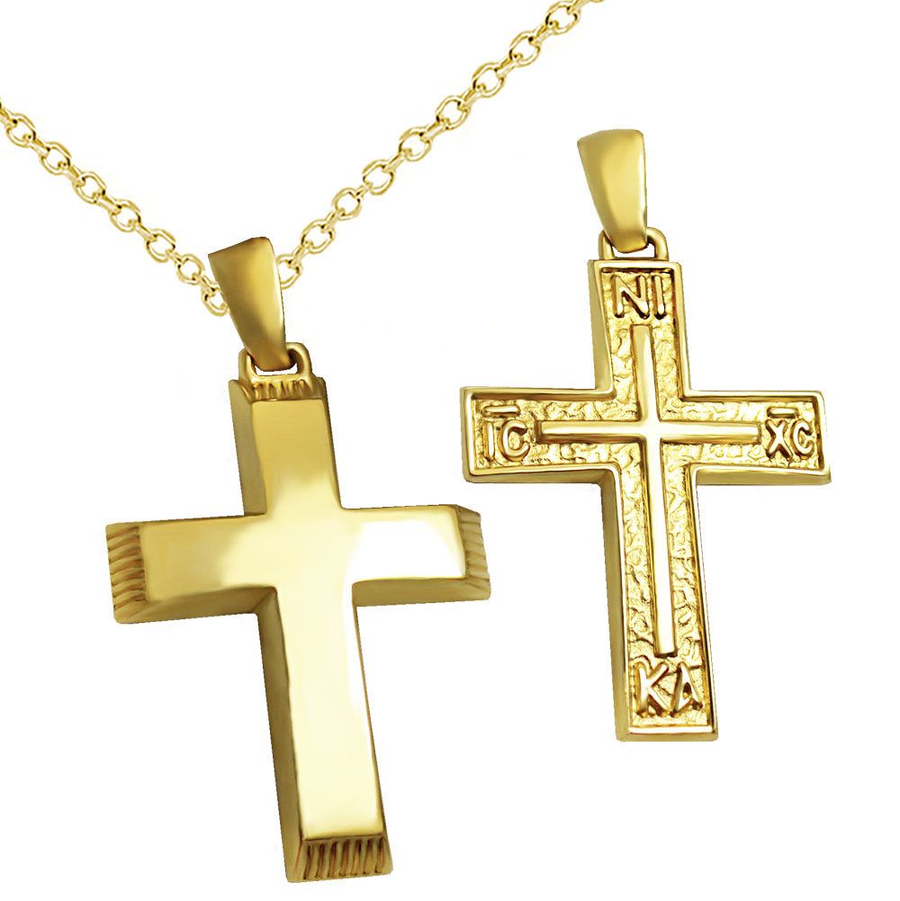 STTHAN1318m -Χρυσός βαπτιστικός σταυρός 14Κ με αλυσίδα